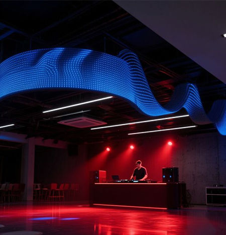 A flexible LED mesh screen is a bendable, lightweight LED display designed for curved surfaces, architectural integration, and transparent installations.