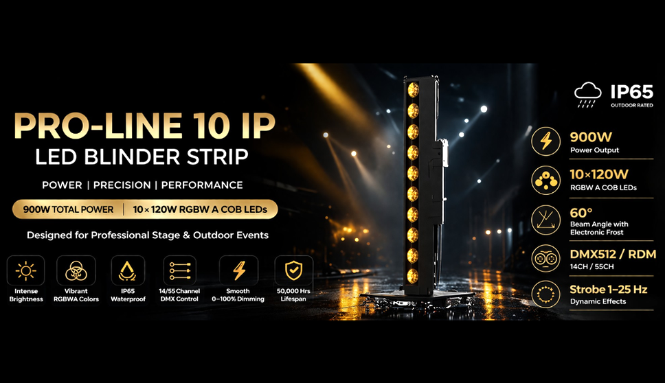 The Pro-Line 10 IP is not just another LED blinder strip—it’s designed for professionals who demand power, precision, and durability. Its strong light output ensures visibility even in the largest venues, while the waterproof body guarantees safety in outdoor conditions. The versatile DMX control makes it a favorite among lighting designers, stage engineers, and rental companies.