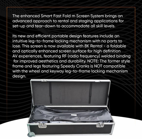 Heavy-Duty Carrying Case with Wheels: Each Smart Fast Fold Screen includes a rugged, wheeled carrying case for easy storage and transport.